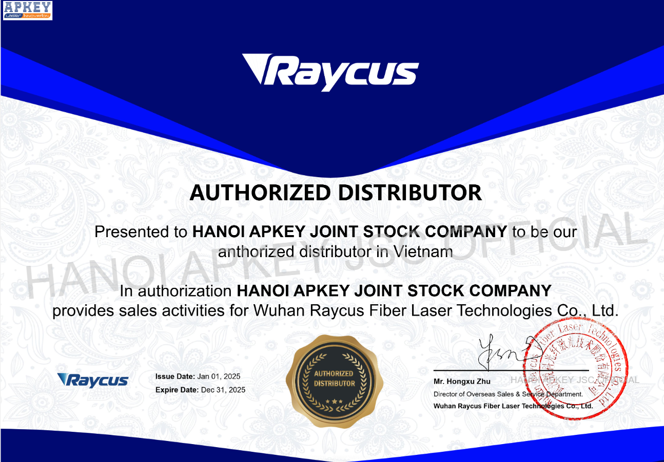 được thành lập năm 2017 với nòng cốt là đội ngũ kỹ sư và chuyên gia, giàu kinh nghiệm trong lĩnh vực công nghệ Laser. Kể từ năm 2017, Apkey Hà Nội đã trở thành Nhà phân phối chính thức của Raycus Fiber Laser Technologies Co., Ltd. – nhà sản xuất nguồn laser sợi quang hàng đầu thế giới (có trụ sở tại Vũ Hán, Trung Quốc). Đồng thời, chúng tôi cũng là Trung tâm dịch vụ Bảo hành và Sửa chữa ủy quyền của Raycus tại Việt Nam.